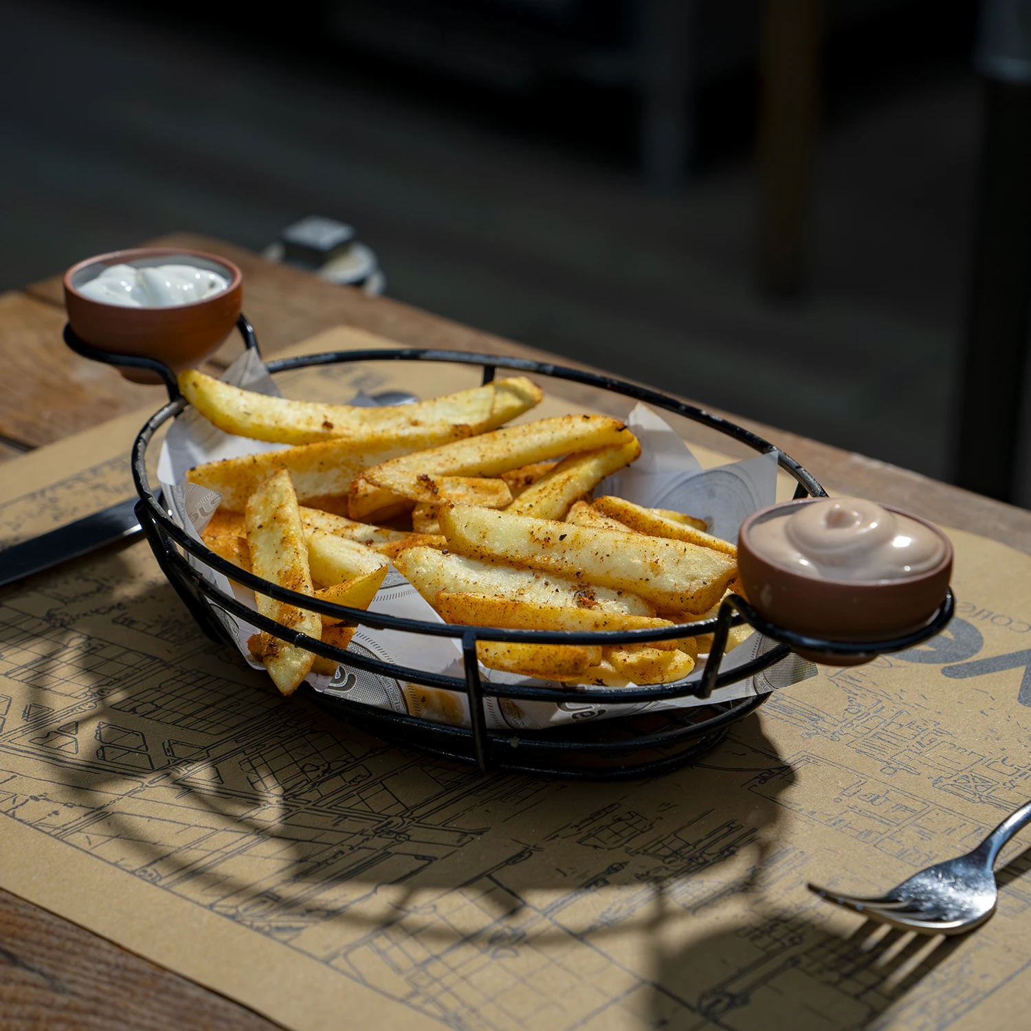 Trüf mantar yağı, toz parmesan, ranch sos ve kokteyl sos eşliğinde.
