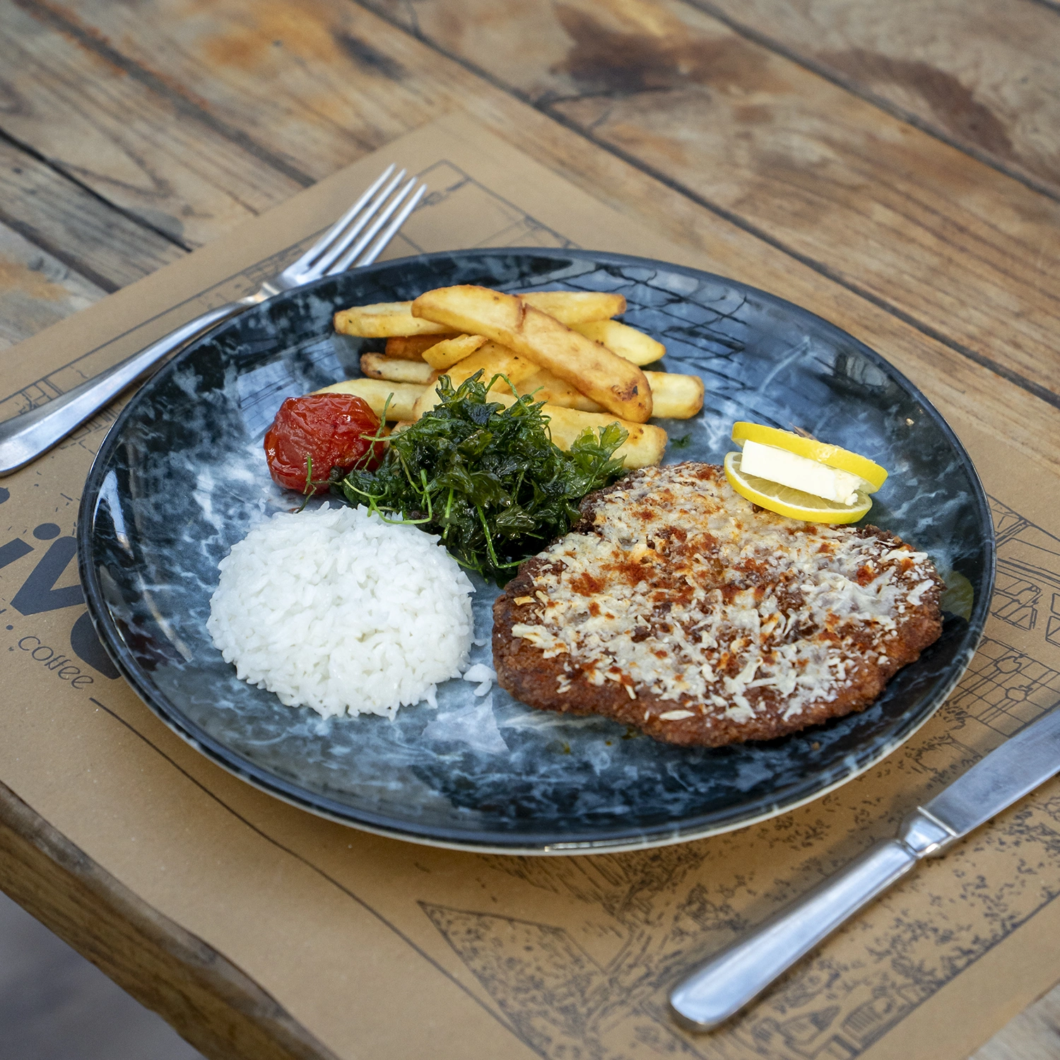 Pilic Fileto, pirinç Pilavi, Közlenmiş Domates, Biber Patates Cips ile