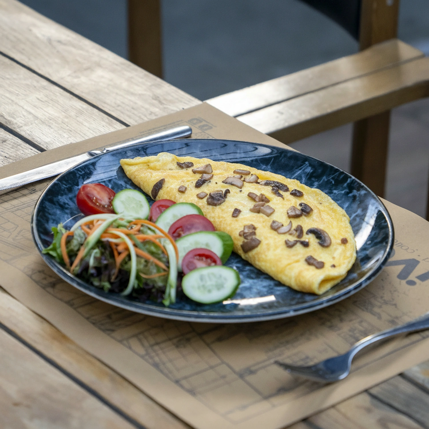 Dana Füme, Pişi, Sosis Kızartma,Kızarmış Hellim Peyniri, Ev yapımı patates ve biber kızartması, Scrambled Yumurta, Çeri Domates, Roka ve İki adet çay ile servis edilir.